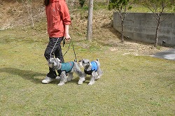 神奈川県の亀田はなちゃんの合宿が終わりお迎えの日となりました。 お兄ちゃん犬のそら君(右の写真の服を着た子)は今回はお家で留守番でしたが、はなちゃんと久しぶりに会って大喜びでじゃれあっていました。 モトコランドでのはなちゃんは、他の犬達とも仲良く遊び、聞き分けの良い子でした。 ちょうど発情中だったせいもあり、他のワンコ達との接触も注意が必要でしたが楽しんでくれたようですよ。 |