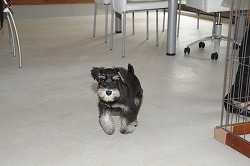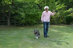 新潟県の宮本様ご予約犬のシュナウザーの女の子です。 訓練開始から1週間が過ぎると、日頃のトレーニングの成果が随所に見られるようになって来ました。 ノーリードでアイコンタクトを取りながらの歩行訓練でも、左側に寄り添うように歩いています。 |