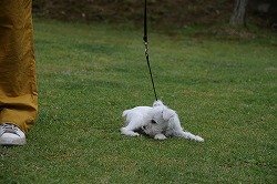 3月22日生まれのホワイトシュナウザーの”3兄弟”が揃って《合宿パピー》としてのトレーニングに入りました。 大阪の上田様はこの子が2頭目となります。 トレーニングの初日は、何もかもが始めての体験なのでリードを付けたとたんに「イヤーだ!」とばかりに踏ん張って動こうとしません。芝生の感触も初めてなら、周りの景色も初めて見るのです。 《合宿パピー》では、一般家庭では体験する機会の少ないことを積極的に体験させるようにしています。 なかでも、多くの犬と触れ合うことから学ぶことは多くあり、人が教えることのできないことも学んでいきます。 犬は仲間同士のコミニュケーションの基礎を、生後3〜12週「犬の社会化期」といわれる期間に集中的に身につけると云われています。 この時期の過ごし方は生涯に関ることなので、とても重要なんですね。 |
