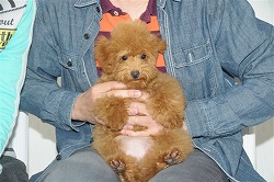 三重県の上原様がトイプードルの男の子を迎えに来られました。 初めてのワンちゃんとのことですが、わたし達がいつでも相談に乗りますから安心して愛犬と楽しく過ごしてくださいね。 名前は「ココア」で〜ス。よろしくね。 |