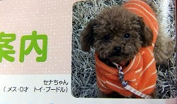 京都の堂口セナちゃんからメールが届きました。 雑誌「いぬのきもち」6月号にセナちゃんが掲載されたそうです。 来月で1歳になる、とても小ぶりで可愛い女の子です。 我が愛犬が掲載されるのは嬉しいですよね。良かったねセナちゃん!! |