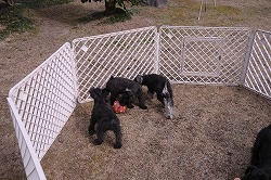 犬は本来、非常に高いコミュニケーション能力を持つ動物ですが、 仲間同士のコミニュケーションの基礎を生後3〜12週(社会化期)に集中的に学習すると言われています。 即ち、誕生後間もなくから皆様にお引渡し後の(生後2ヶ月前後)生後3ヶ月頃の時期にどのような環境で過ごすかが大変重要になります。 社会化期に他の犬と触れ合う機会が少なかった犬は、仲間同士のサインをうまく読み取れなくなってしまう傾向があり,他の犬と上手く遊べない、怖がる、吠える、威嚇するなどの行動をとってしまいます。 これを、そのままにしておくと散歩など外へ出ることがストレスとなり、普段の生活の些細なことにも過敏に反応してしまう「問題犬」になってしまうことがあります。 |