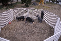 モトコランドでは一般的な「子犬お引渡し期」から時期をずらして、必要な経験と訓練を してからお引渡しする《訓練パピー》という制度を設けています。 犬の生涯に関わる大切な時期を、環境と設備の整った「故郷」で親や仲間と一定時間 を過ごし、「社会性」を備えたワンちゃんに育ててお引渡しします。 |