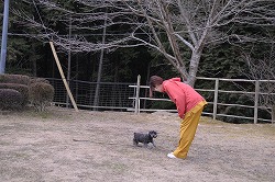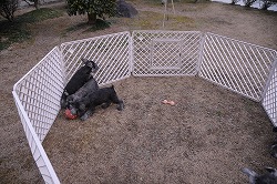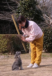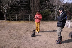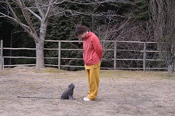 | 指示を出す側と、指示を受ける側の立場を明快に理解させています。 “お座り”して指示を待つようになってきました。《主従関係》 |