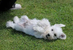 神奈川県の池田様ご予約のホワイト・シュナウザーの男の子が、生後2ヶ月になり本日より《パピー合宿》のトレーニングを開始しました。 芝生の感触に戸惑いながらも、開放感が気に入ったようです。 少し抵抗するものの仰向けになり、優しく身体中を撫でてやると徐々に全身の力を抜いてリラックスした表情になっていきました。 次に、口を開いて指を差し入れたり、耳を触ったりと嫌がる部分を触っていきます。 このような事を嫌がらないようしておくことで、飼い主への「服従心」を養い、普段の手入れのしやすい子になります。 これから段階を経て、様々な「犬の社会化」に向けてのトレーニングが始まります。 頑張っていますので、応援してやってくださいね。 |