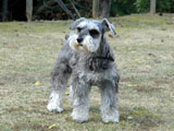滋賀県の栗山様がシュナウザーのトリミングに来られました。 生後4ヶ月半になる女の子ですが、トリミング・テーブルの上での落ち着いた態度は模範的で、担当トリマーの錺(かざり)も吃驚するほどです。この歳でこの落ち着きようですから5歳になれば・・・(???)どうなるんでしょう? |