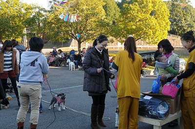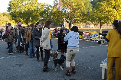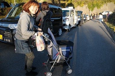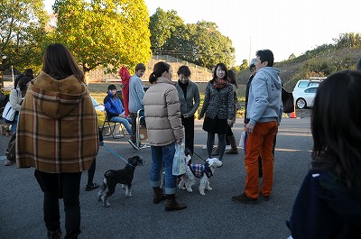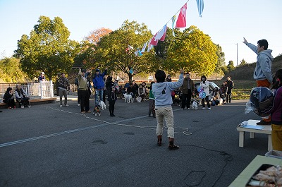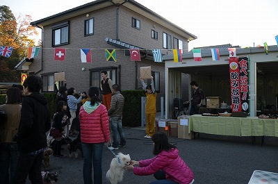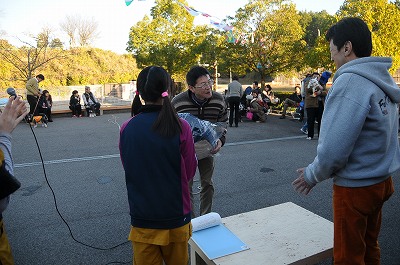 晩秋ともなると、日が暮れるのが早くなりました。あれよあれよといってる間に会場は日陰となり、始まった頃の陽気はどこへやら、上着を着込むこととなりました。 でも、みんな元気を出してゲーム大会です。今回は簡単な問題を○か×で答えていただくゲームをしました。 |