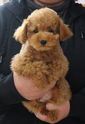京都の沼田様のトイプードルの男の子です。 とても穏やかで落ち着いた性格は、年齢(2ヶ月半)とは思えないほどです。 じーっと見つめる目が、なんとも可愛いいのですよ。 |