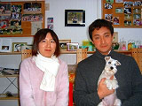 昨年の「オーナーさんの集い」にも参加していただき、仔犬選びなど何度も足を運んでいただきましが、今日待望の引き取りにみえました 初めて抱っこされて、緊張気味でしたがすぐに 慣れてくれるでしょう。 成長を楽しみにしています。 |