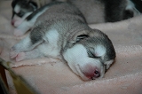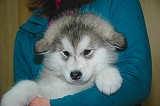 三重県の樋口様、長松様がアラスカン・マラミュートを迎えに来られました。 北国原産の犬種とはいえ、仔犬のときは抵抗力が充分ではありません。 環境の変化で見かけ以上にストレスを受けますので,寒さ対策は怠らないで下さいネ。 一ヶ月もすると、写真の面影がウソのように成長しますので、今、たくさん 写真を撮っておくことを、お勧めします。