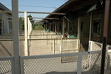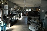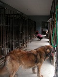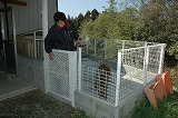 第二犬舎の内外部です。6面に仕切られた砂地の運動場があり、屋内には、ステンレス・ケージを並べてあります。