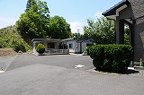 40メートルほどのスロープを登りきったところに、来客用の応接室スペースと駐車場があります。