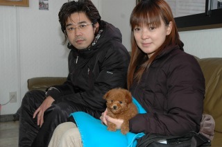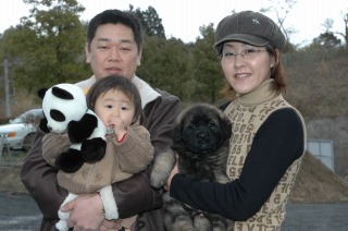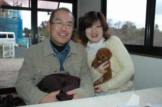 トイ・プードルの男の子を明石より杉本様御夫妻が迎えにこられました。 見るからに優しそうな御夫妻に抱かれて、ワンちゃんも安心したのかヤンチャぶりを発揮!! 厳しさも時には必要です。優しく&厳しく・・・・を忘れないで下さいね。 |