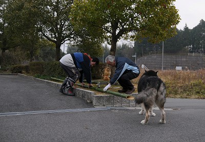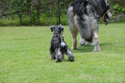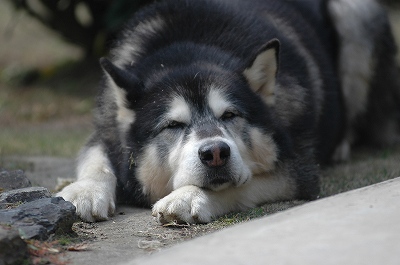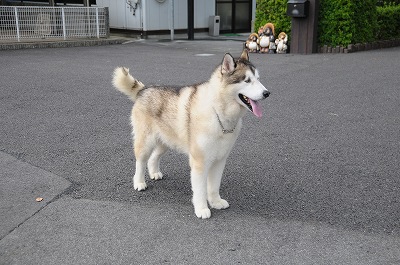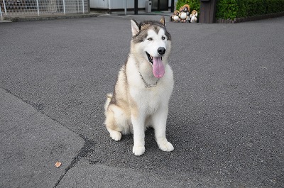 散歩が大好きなシュウを連れて歩くと、マラミュートの持つ 強靭な四肢は頼もしく、坂道を登る時など重宝する。 スタミナがあって、急峻な山の斜面を一気に駆け上るのが得意だったね。 |