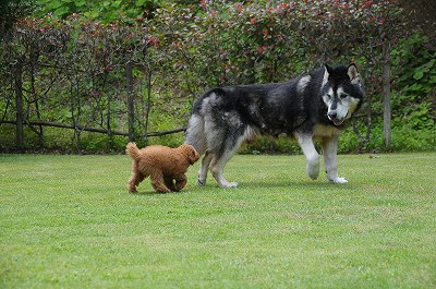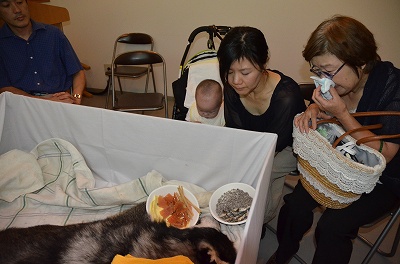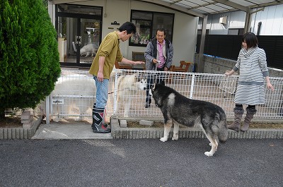 9月8日(土) 大阪の牛久保様ご夫妻がポメラニアンの「まろ&めろ」を連れて訪ねてこられ、そんなシュウに会って貰いました。 ご夫妻は揃って大の愛犬家で、”まるとめろ”を目に入れても痛くないほどの可愛がり様です。 シュウに声をかけていただきありがとう御座いました。 |