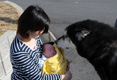 シュウの子供が見てみたいと家族みんなが願い、正樹と亜希子がカナダへと飛び、ブリーダーからシュウの 花嫁「ソフィ」を譲ってもらってもらう事になる。 そして、2004年11月に待望の赤ちゃん誕生しました。スタッフも全員メロメロになるほど可愛い子供達だったな。 その中から1頭の女の子が、ソフィを譲っていただいたブリーダーさんが『譲ってほしい!』とのご要望で、 カナダへ”輸出”し、今も元気に暮らしています。 |
