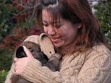 | いよいよ『旅立ちの日』が来ました。 この子を向かえるため、準備万端でこの日を、心待ちにされていた〈新 オーナーさん〉は もちろんのこと、私たちスタッフも緊張の日なのです。 犬舎訪問、子犬選びなどで何度も足を運ばれた方も、綺麗にトリミングされたワンちゃんを初めてその腕に抱いていただきます。 (モトコランドでは、この日まで素手では触れて貰えません) 『ワーッ!!可愛い!!』 あちこちから、歓声の声が上がって、私たちは始めて胸を撫で下ろす ことができるのです。