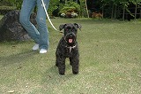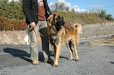 愛知県より宇都宮様ご夫妻が、レオンベルガーの小次郎君と『里帰り』してくれました。 均整のとれた構成が、体高のある牡犬らしさを強調しているようで、壮年期に なればボリューム感も増し、益々たくましくなってくれることでしょう。 |