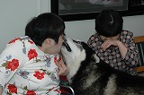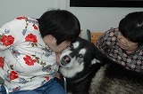 大阪より吉村様ご家族が、『恋犬?』のS・マスチフの〈ゴードンさん〉とA ・マラミュートの〈シュウ〉に 会いにきてくれました。 犬大好きご家族で、もう10数年のお付き合いなんですが、ゴードンとシュウに『恋』をしてしまったそうで、度々両犬に逢いに来られるのです。 愛されていることを、犬って敏感に感じ取るもので、両犬の表情も、崩れっぱなしでした。頬ずりされて思わずキスしてしまったシュウでェーす。 |