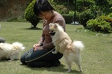 兵庫県より八田様ご夫妻が、ポメラニアンのベル君と『里帰り』されました。 「目の中に入れても・・・」の表現がピッタリの親ばかぶりで、ベル君が中心の生活ぶりが目に浮かぶようでした。 生後7ヶ月なのですが、感心するほどの躾け振りで、ご夫妻の愛情を一身に受けとても「よい子」に 成長した姿に、ご夫妻のお人柄を見るようでとても楽しいひと時でした。 |