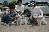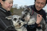 神奈川県より山内様ご夫妻が、ソルト&ペッパーを。 愛知県の澤中様がホワイトのシュナウザーを連れての『里帰り』をしてくれました。 ご両家とも、躾けもバッチリで、行儀良く仲良く記念の写真を撮りました。 犬を見れば、オーナーさんの人柄が伝わってくるよう様で、両犬共とてもマナーの良い子になっていました。 |