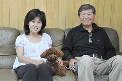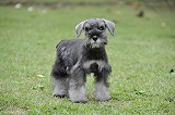 8月始めてのお引渡しはミニチュア・シュナウザーの男の子です。 京都の奥野さまご夫妻に抱っこされて緊張気味の表情ですが、根は とっても活発な子です。 まだまだ幼い子ですので、クーラーの冷やしすぎにも気をつけてやってくださいね。 |